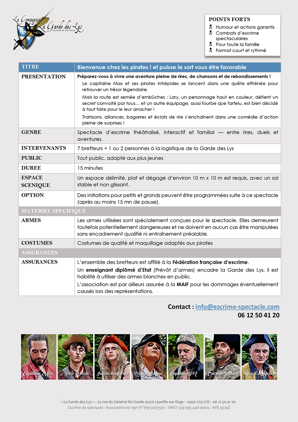 La Garde des Lys met en scène des spectacles mêlant escrime artistique, jeu théâtral et costumes d’époque, dans la pure tradition des films de cape et d’épée. Mousquetaires intrépides, pirates tonitruants, nobles gentilshommes… la troupe donne vie à tout un pan de l’histoire à travers des personnages hauts en couleur.